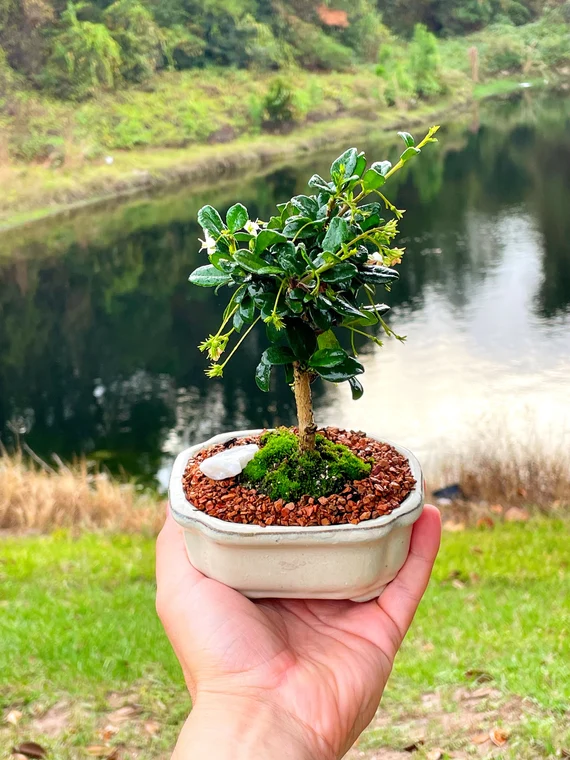 Carmona Bonsai is perfect for indoor display and produces delicate white flowers throughout the year.