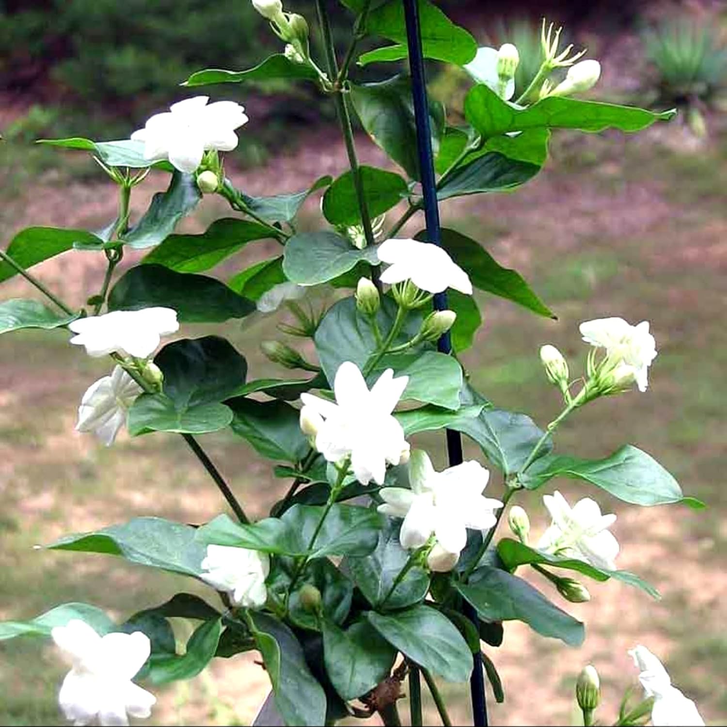 Jasmine produces small white flowers with a sweet fragrance. It is widely used for decorative gardens, balconies, and religious purposes.